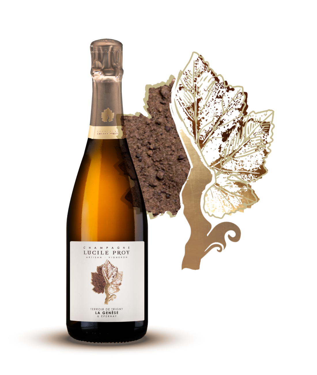Mais la Genèse est aussi un symbole : chaque verre évoque le début de notre histoire, ancrée dans ce terroir fondateur. Sur l’étiquette, une feuille de vigne enveloppe l’image du sol qui a nourri cette cuvée, rappelant son origine et soulignant le lien indissociable entre la terre, le vin et l’histoire familiale. La dégustation devient ainsi une immersion dans l’âme de nos champagnes, de la vigne au verre.