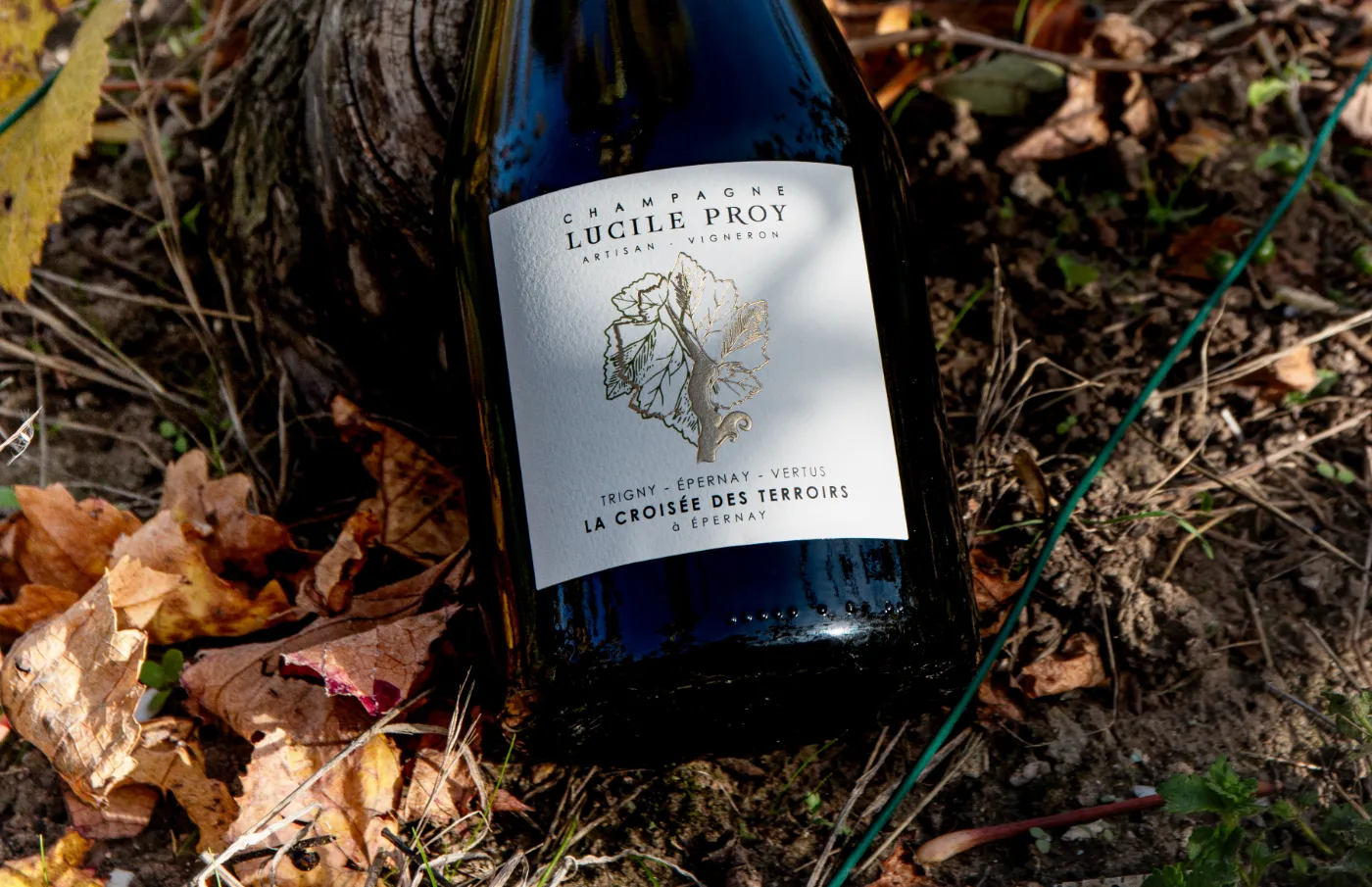 Mais la Fûlosophe est aussi une histoire en mouvement : celle des vignes d’Épernay, que j’écris aujourd’hui avec la même exigence qu’elles m’imposent. Elle est à inventer, comme un futur déjà enraciné. Sur son étiquette, une feuille de vigne renferme l’image du sol : celui qui soutient, inspire, élève. Feuille et terre, surface et profondeur : la vigne comme une vérité à contempler autant qu’à déguster.