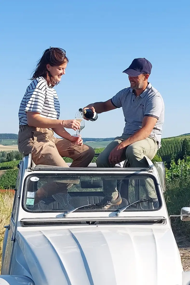 Pour prolonger l’expérience, je vous invite à me rejoindre dans la parcelle Les Closets, située sur les Coteaux Ouest qui surplombe Épernay et offre une vue magnifique sur la capitale du Champagne. Installés sur joli muret en pierre vous y dégusterez le Champagne de votre choix, accompagné d’un pique-nique préparé par un traiteur local. Je vous raconterai l’histoire de cette vigne, de notre terroir, avec des explications sur la culture de la vigne. C’est un moment à part, une parenthèse en plein cœur du vignoble, un moment d’échange avec une vigneronne.